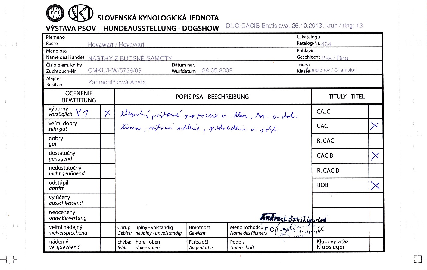 titulu Grandšampion SR