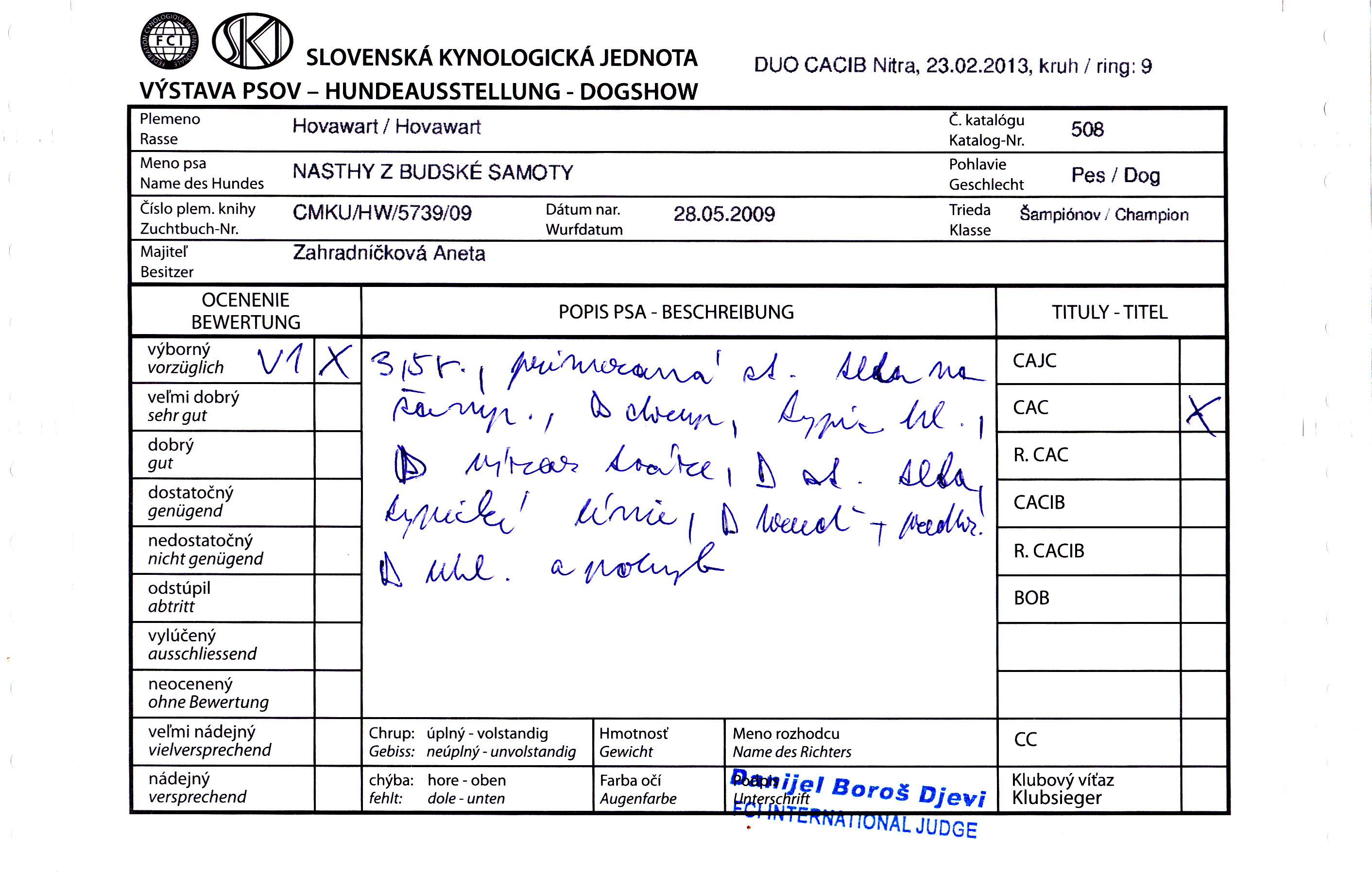 V1, CAC, res.CACIB